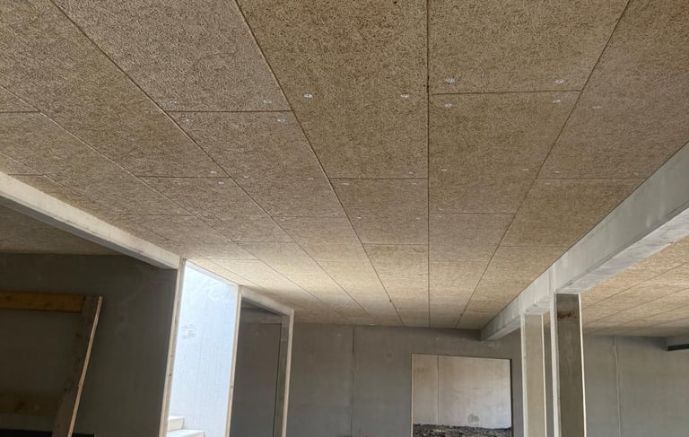 Les panneaux RSD, fixés sous dalles béton, offrent une isolation thermique performante tout en garantissant un rendu fini net et durable. Leur pose est rapide, propre et adaptée à tous types de projets, en neuf comme en rénovation, contribuant à améliorer l’efficacité énergétique du bâtiment.