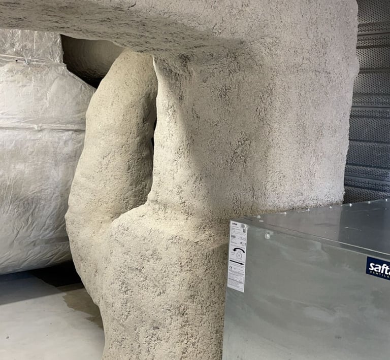 Le flocage, projeté directement sur gaine tôle de ventilation et dedésenfumage permet d’apporter une stabilité au feu. Cette protection a pour but d’empêcher la propagation des flammes ainsi que la montée en température de celle-ci.